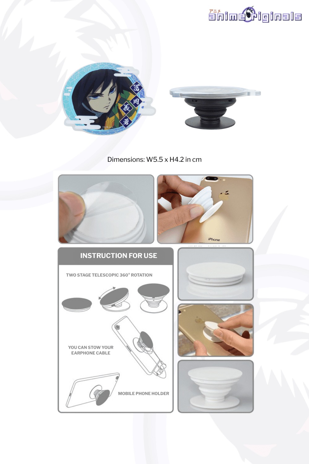 Demon Slayer Pop-out Phone Grip of Giyu Tomioka. Licensed by Muse Communications