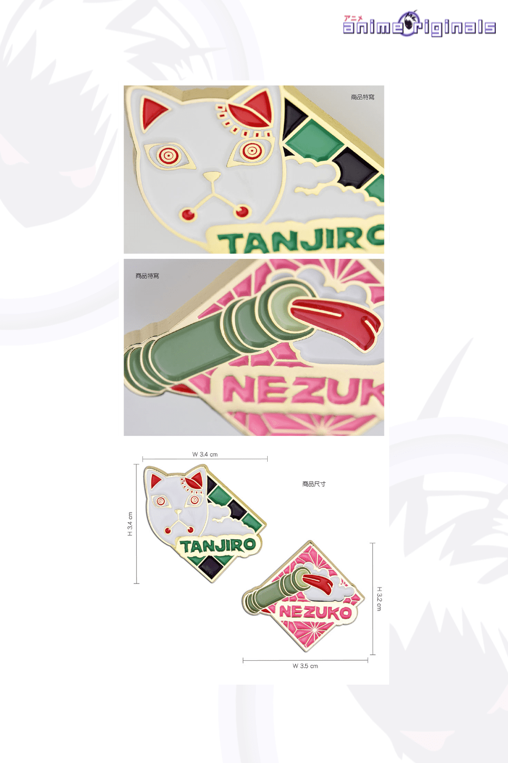 - Size: Tanjiro – W3.4 x H3.4 cm, Nezuko: W3.5 x H3.2 cm